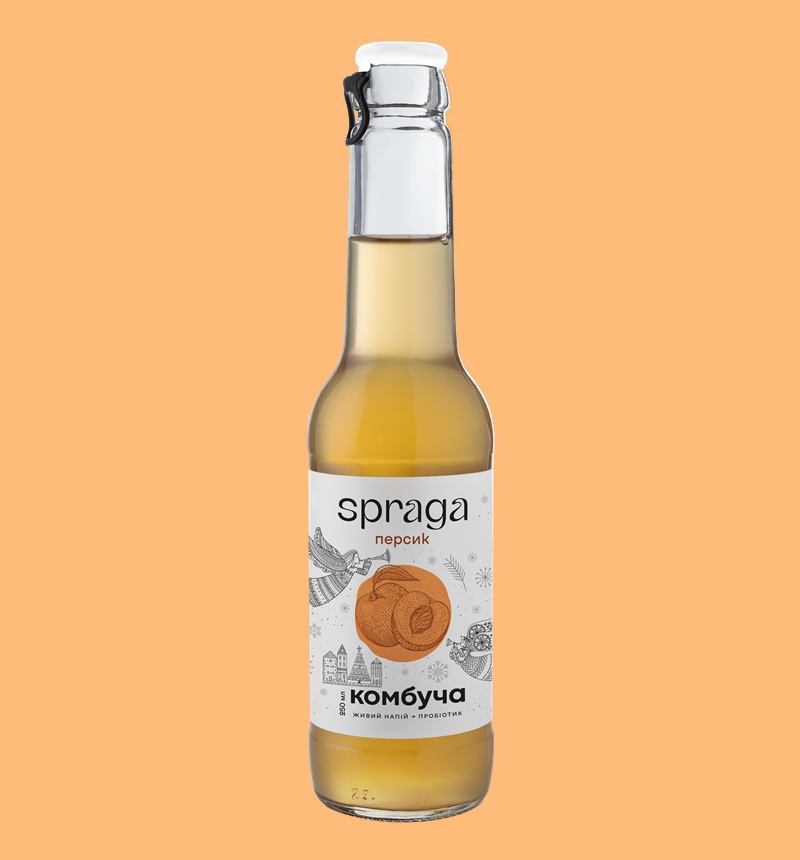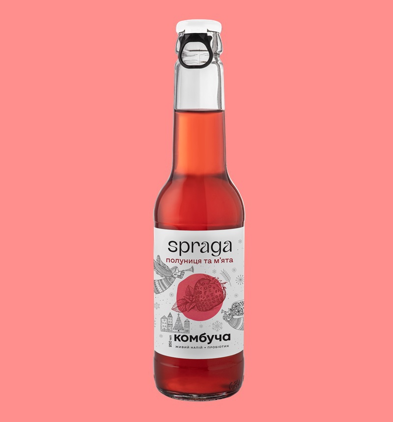 Неймовірне поєднання пелюсток троянди, вишневого соку, чаю з цедрою апельсину, шматочками ананасу, шипшиною, вишнею та культури бактерій, яка надає всі корисні властивості комбучі Spraga.